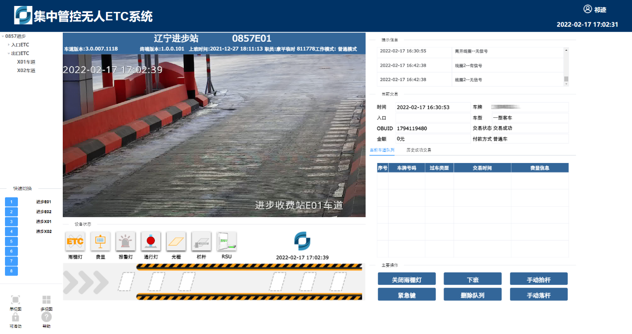● 多收费车道外设状态展示。